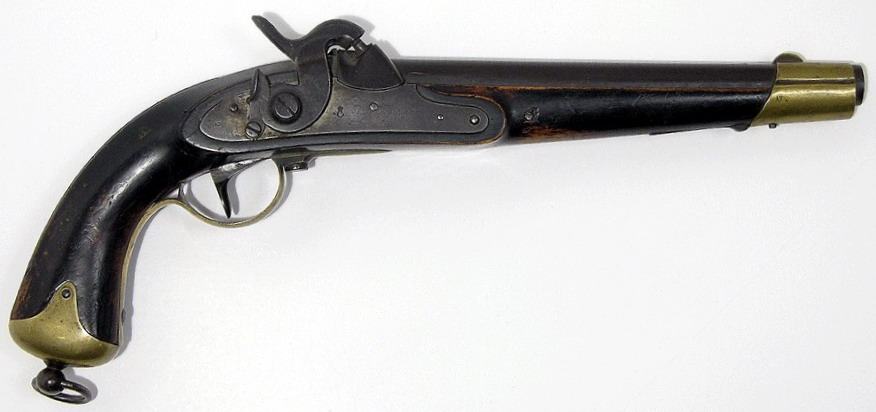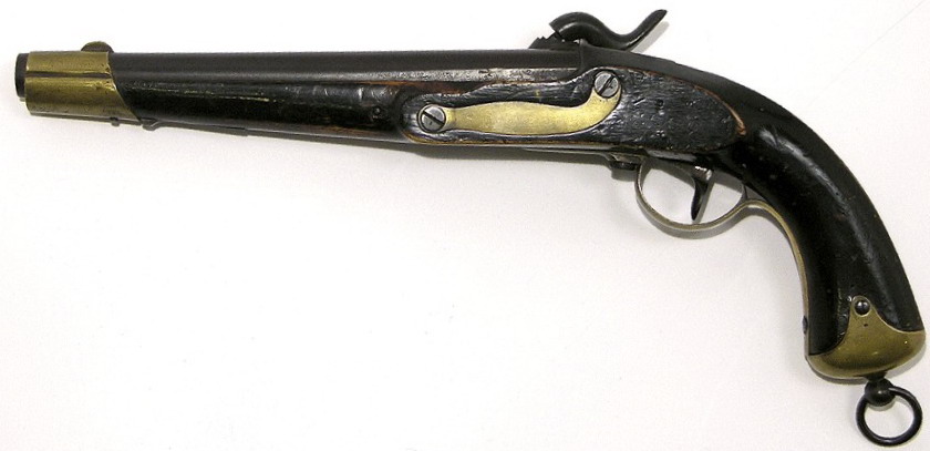 Der Lauf ist dem Modell 1820 sehr ähnlich, aber gebräunt. Auch diese Pistolen wurden in Paaren hergestellt, eine von ihnen hatte einen gezogenen Lauf und die anderer hatte einen glatten Lauf. Die gezogene Pistole hatte vier Züge und ein Standkimme auf dem Schwanzschraubenblatt. Die glattläufige Pistole hatte nur eine ziemlich breite Rinne als Visier. Die Pistolen haben ein breites Band aus Messing als Vorderschaftabschluss. Es wird durch eine gefederte Klinke gehalten. Die Kolben-Kappe wird mit einer horizontalen Schraube gesichert, welche durch die Seitenstreifen der Kappe geht. Die Schlossgegenplatte ist S-förmig. Es gibt eine Kolbenrückenschiene zur Befestigung eines Anschlagkolbens. Dieses Modell wurde im August 1845 angenommen, aber nur sieben Paare wurden jemals hergestellt.