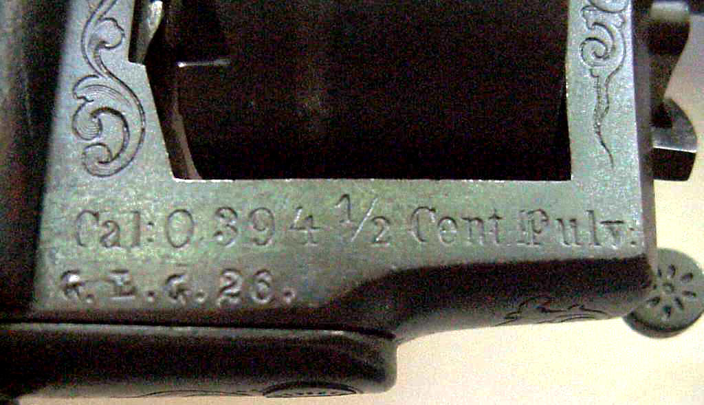Das Kaliber 0,39" ist das preußische Militärkaliber und - soweit mir bekannt - haben nur die "militärischen" Revolver eine fünfstellige Seriennummer und als höchste Nummer die 11100. Von daher müsste es sich beim fraglichen Stück um eine militärische Version handeln und nur von daher kamm die Vermutung auf, dass es sich bei dem Stempel "G.E.G.26." möglicherweise um einen Truppenstempel handeln könnte. Die Betonung liegt dabei auf "Vermutung", "möglicherweise" und "könnte".