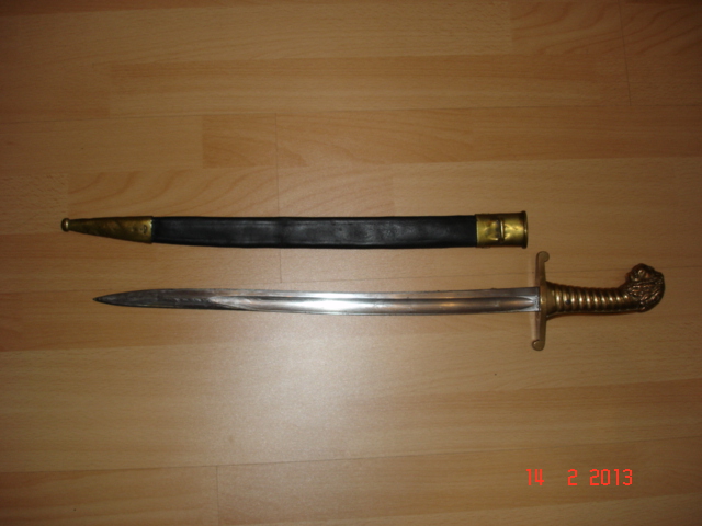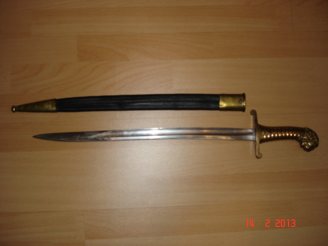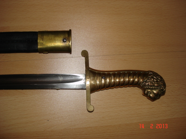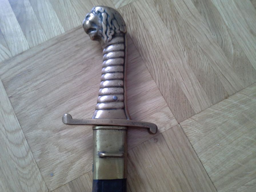 (Klinge und Scheide vom Infanterie-Seitengewehr M/69 aptiert mit neuem Löwenkopf-Gefäss)