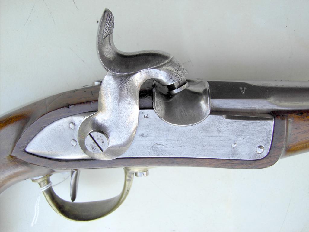 V“ am Lauf rechts. Perkussionsschloss M 1842 mit gerader Vorderkante. Gotisches „