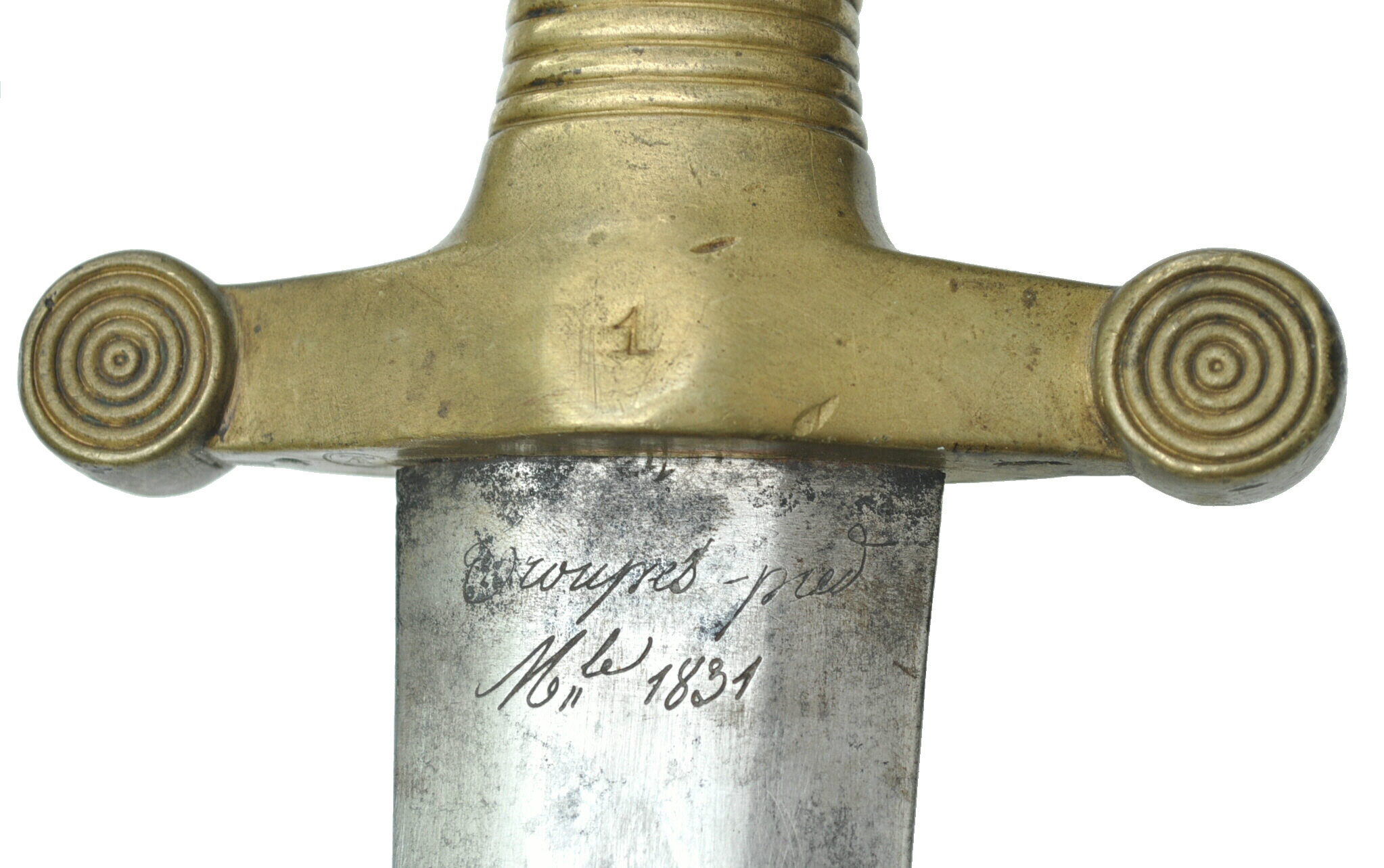 rechte Fehlschärfe Gravur 'Troupes-pied Mle 1831'