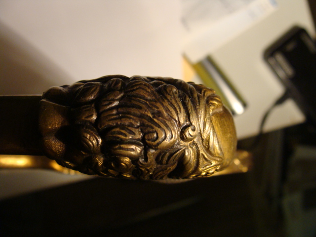 Der optische Vorteil einer verschraubten Griffkappe bestand ja darin, dass der ausgeformte Löwenkopf nicht für eine Angelvernietung ( im vorliegenden Fall recht unsauber ausgeführt ) durchbohrt werden musste und trotzdem mittels der Angelverschraubung ein fester Klingensitz gewährleistet ist.