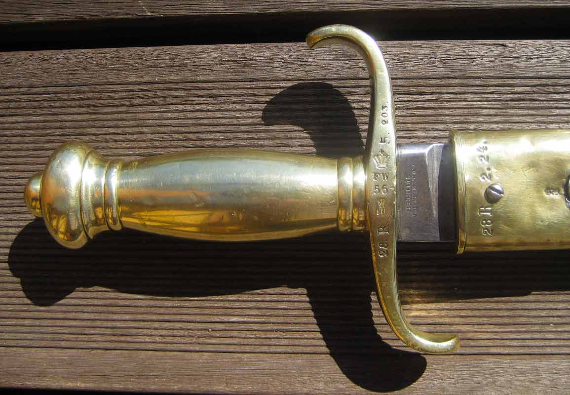 vom 1. Kurhessischen Feldartillerie-Regiment Nr.11 mit Artillerie-Faschinenmesser, ab 03.08.1848 für die Fußartillerie bestimmt und mit A.K.O. vom 22.2.1888 abgelöst vom "kurzen gebogenen Messer" [Pietsch], dem Seitengewehr U/M.