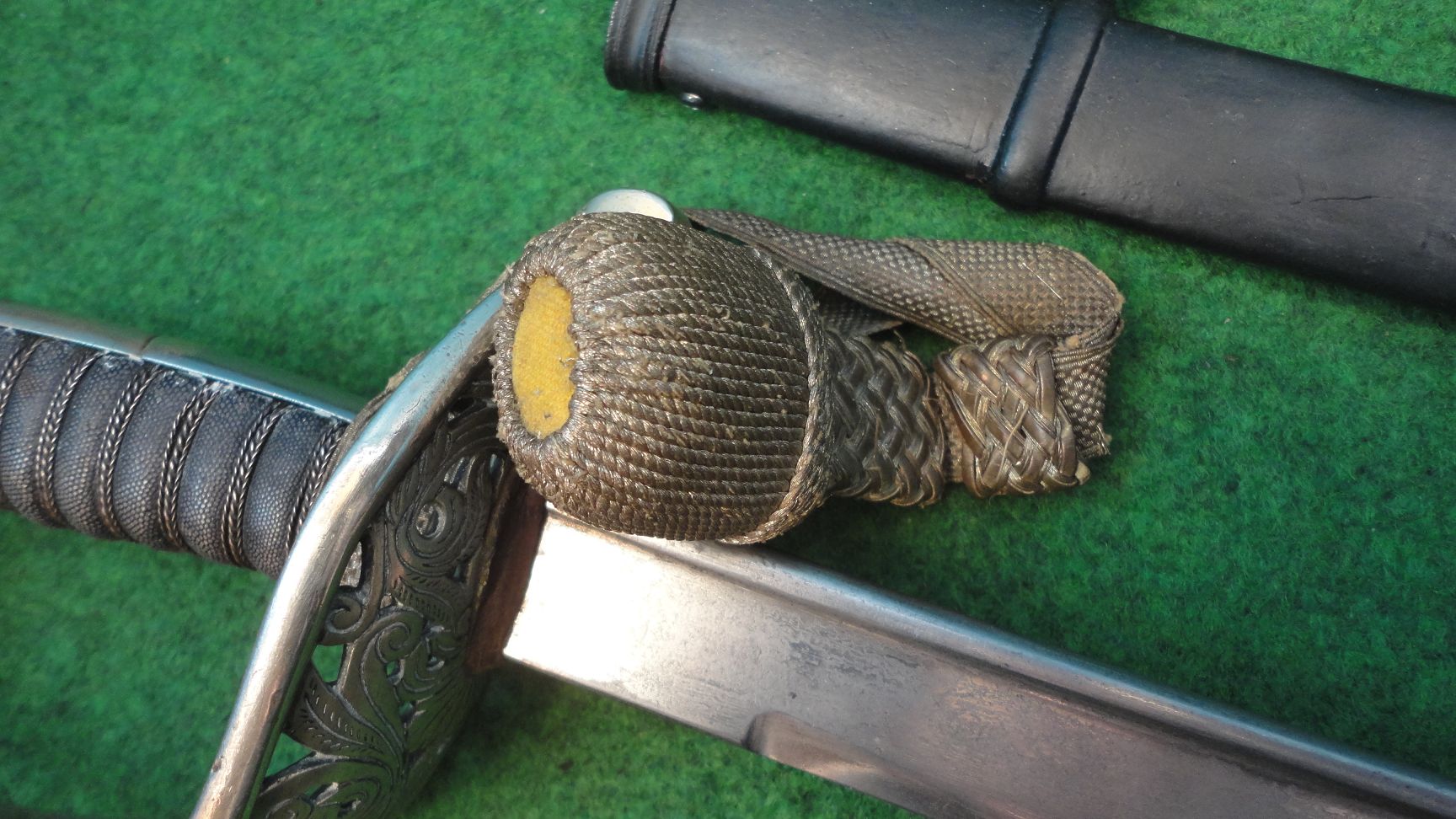 Beim Saebel handelt es sich um einen Offiziersaebel aus dem Großherzoglich Hessischen Feldartillerie-Regiment Nr. 25. Das Herrscher-Monogramm aus Messing zeigt zwei verschlungene L unter Krone” (Grossherzog Ludwig IV., 1889 - 1892).