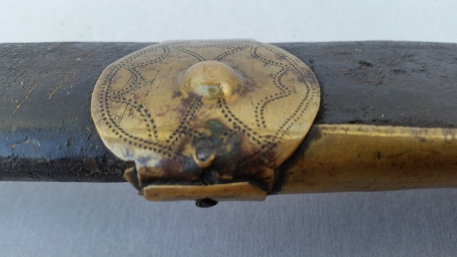 warum kein mundblech? weil das damals ofter der fall war, dass kein mundblech angebracht war, bzw könnte dieses in den vielen jahren auch verlorengegangen sein. müsste man auf der quartseite der scheide gucken, ob man etwas erkennt.