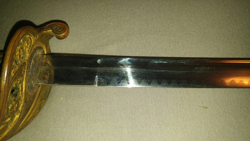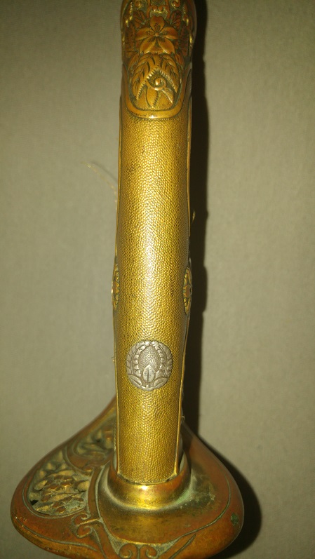 Ich schließe mich Zietenhusar an : Ein solides und ehrliches Stück und ein guter Einstieg in diesen ausgefallenen Blankwaffenbereich. Das Kamon macht aus diesem häufigen Typ 19 ein kleines Unikat : Nach meiner Schätzung trugen nur etwa 20 % dieses Modells ein Wappen.