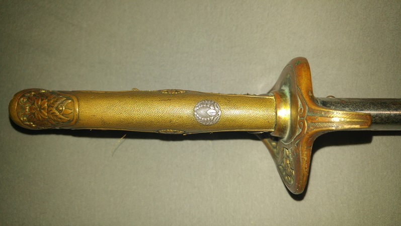 Hier noch 2 Stücke mit diesem Wappen aus meiner Sammlung : Shin Gunto und Typ 19.
