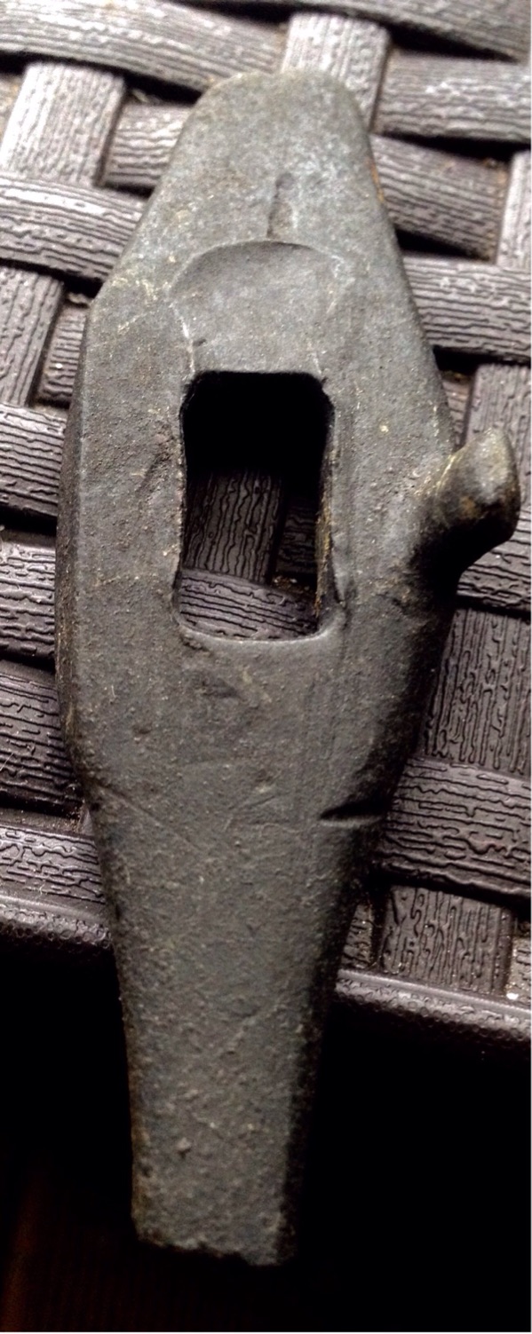 auch wenn das Fundstück auf dem ersten Blick wie eine Parierstange aussieht, würde ich es als eine solche nicht einordnen. Der gesamte Bereich des rechteckigen Ausbruchs sieht so aus als wäre da nie eine Klingenangel drin gewesen. Auch die Form und die Verarbeitung kommt einer Blankwaffen-Parierstange nicht nahe.