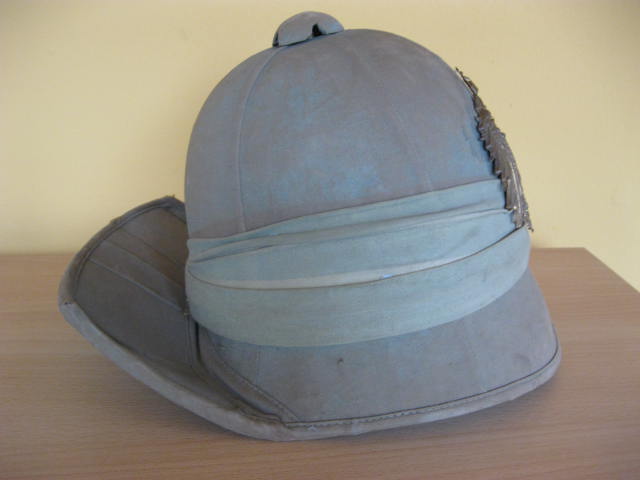 hier den Tropenhelm mit Nackenschirm zum hochklappen.