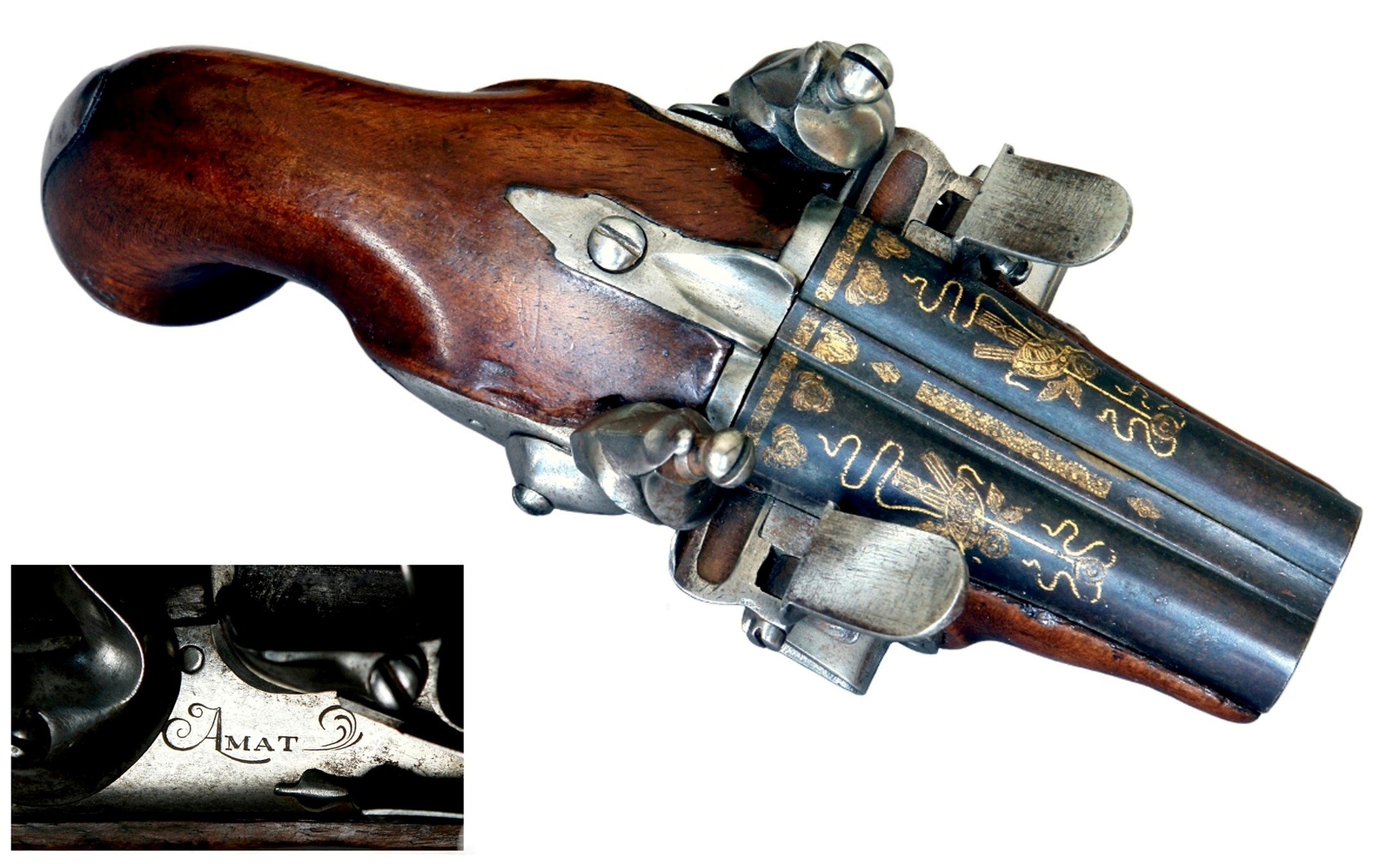 Hersteller war der Im französischen Tulle ansässige Büchsenmacher Amat, der durch seine Lieferungen der ab 1780 in Mode gekommenen „Chien de Mer“ Pistolen für Marineoffiziere bekannt ist.