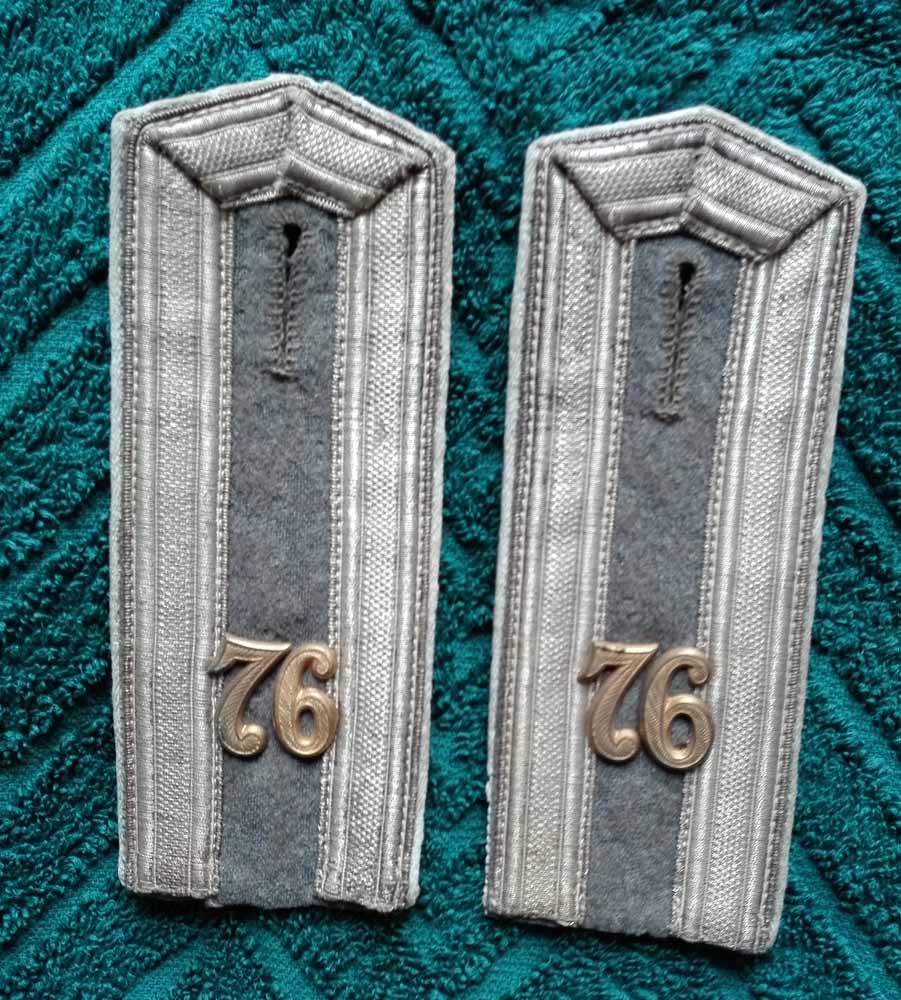 Interessant. So wie es aussieht als Offizier-Stellvertreter vom Infanterie-Regiment (76er) Hamburg zum Infanterie-Regiment Bremen (75er) und dort später als Leutnant!?! Wobei aus den Schulterklappen. m. W. nicht hervorgeht, ob sich sich bei den genannten Formationen um aktive, Reserve- oder Landwehr-Regimenter handelt.