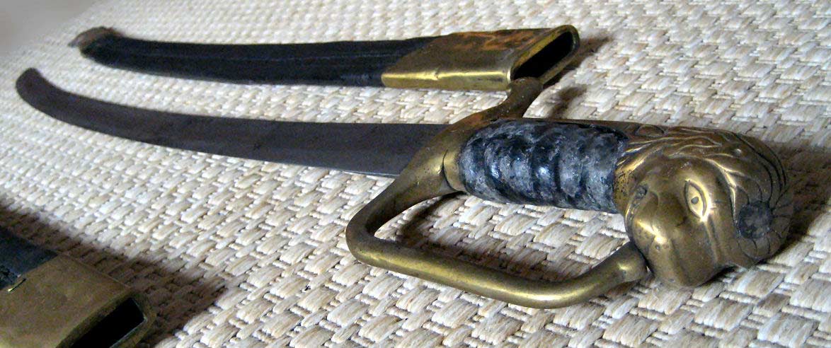 Die drei Säbel aus der Nähe; interessant die geänderte Scheide des rechten Artilleriesäbels (Trageweise ohne Seitengewehrtasche mit zwei Trageringen durch Teilung des Mundblechs).
