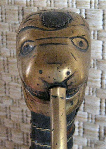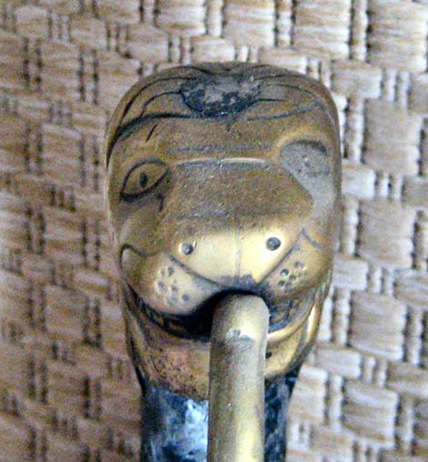 Ortblech (Messing) mit Schleppblech (Eisen!?). Griff, auf der Fehlschärfe der von 1792-1804 verwendete Typ des Frederiksværk-Stempels (Wappen unter Krone).