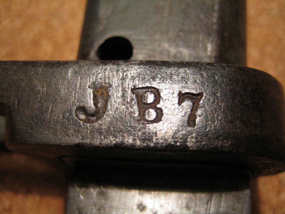 Der einzige ähnliche Stempel den ich finden konnte steht im Buch von Jackson zu den Seitengewehren M 14 auf Seite 66. Leider nur gedruckt und nicht als Bild: J.B.7.458