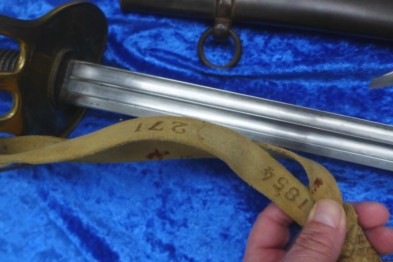 Das Portepee ist aus Leder und hat die Jahreszahl 1854 und NR: 271 eingebrannt,