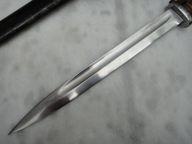 Das Seitengewehr hat ein Feuerblech und die Klinge ist etwas schmaler als die Wehrmachtseitengewehre.Es handelt sich um sogenannte Kommerzielle Seitengewehre für Poolitische,Polizei oder sonstige Organisationen.Dazu gehört ach die R.B.D.