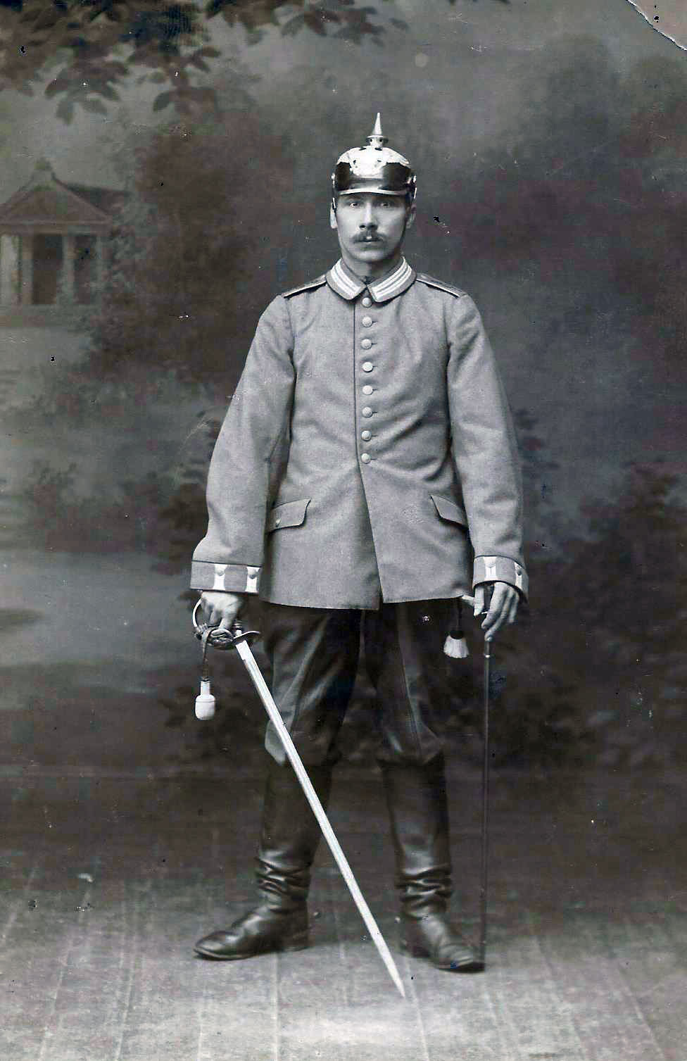 Vermutlich noch vor der Vereidigung und somit zwar mit Faustriemen aber noch ohne Säbel, erhielt er was? Richtig! einen äußerst "passenden" Infanterie-Offizier-Degen n/M. Gemäß dem Motto: Können Bilder lügen? lachen