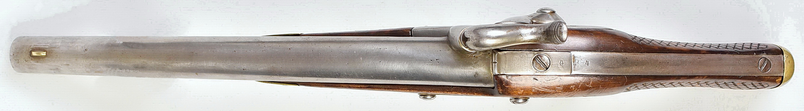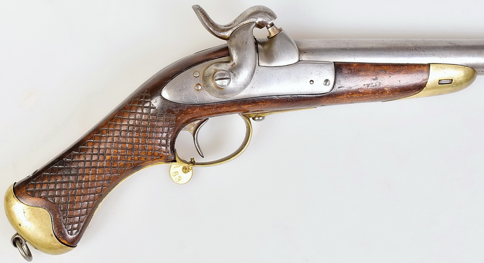 Zweitens war schon bei der ersten Perkussionspistole, welche in Schweden serienmäßig hergestellt wurde (Pistole m/1845 für die Flotte), der Hahn zweigeteilt. Das setzt sich fort mit der Kavalleriepistole m/1845 (es wurden nur 7 Paare gefertigt - aus welchen Grund auch immer), der aptierten Pistole m/1820-49 und der Pistole m/1854 für die Flotte.