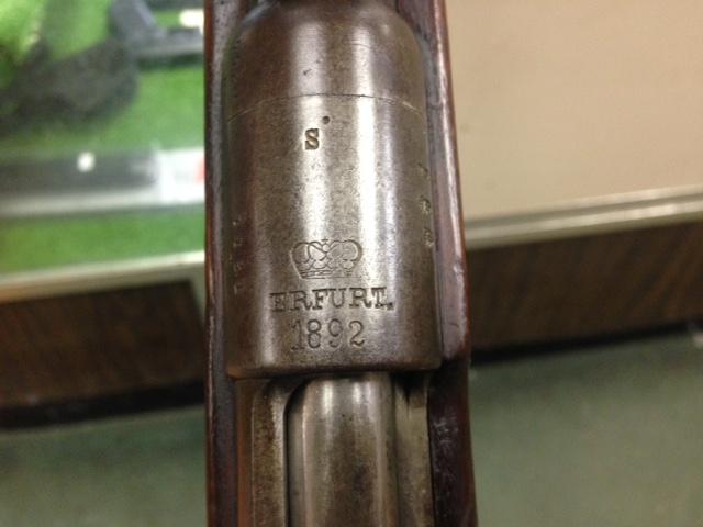 Grüßen aus Alabama; Heute in einem Waffenladen gefunden. Gewehr Mod. 1891, Erfurt, 1892. Die Waffennummer ist 77XX c. Gleichnummert - alle teilen. Selten in den USA. Keine Truppenmarken. Sehr schmutzig, aber in gutem Zustand. Bohrung ist ungefähr 85% +. Weitere Bilder nach einer gründlichen Reinigung.