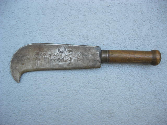 Die Serpe (Hippe)ist franz.Ursprungs.Die 1913 hergestellte Klinge ist auf der kokaven Seite geschärft.