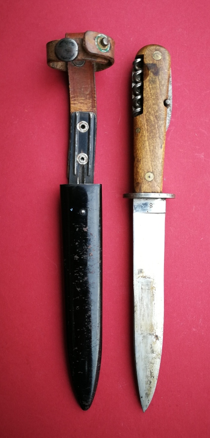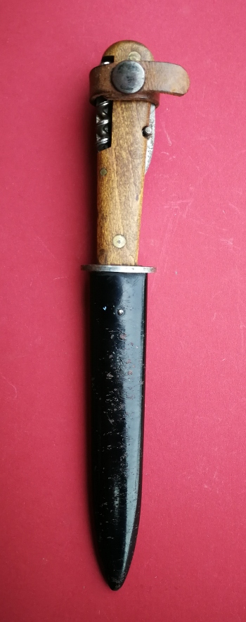 Es handelt sich um ein Deutsches "Kampfmesser" mit Werkzeugeisatz aus der Zeit des Zweiten Weltkrieg.