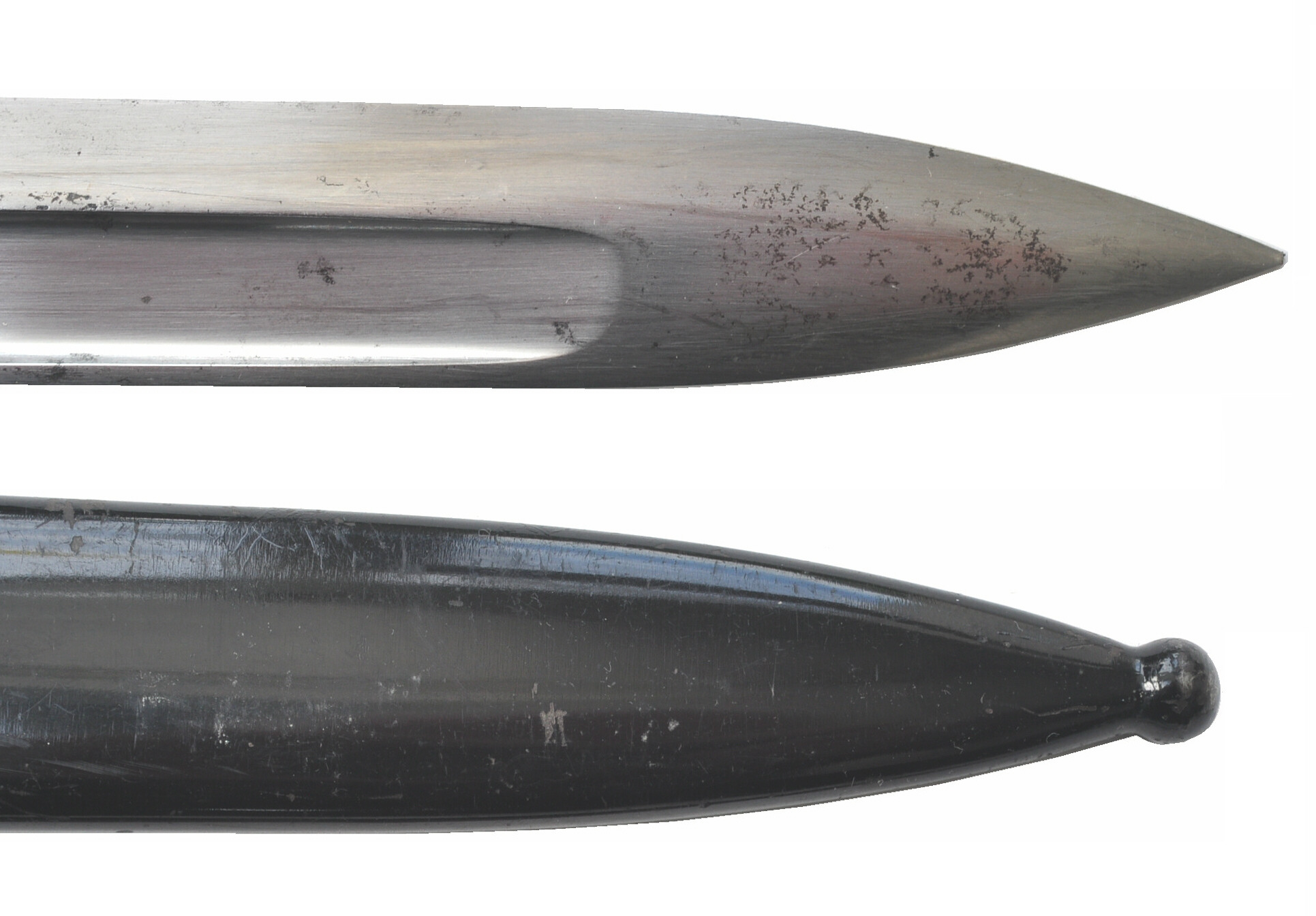 Das UVF-Bajonett hat am Griffkopf schärfere Konturen als das rumänische.