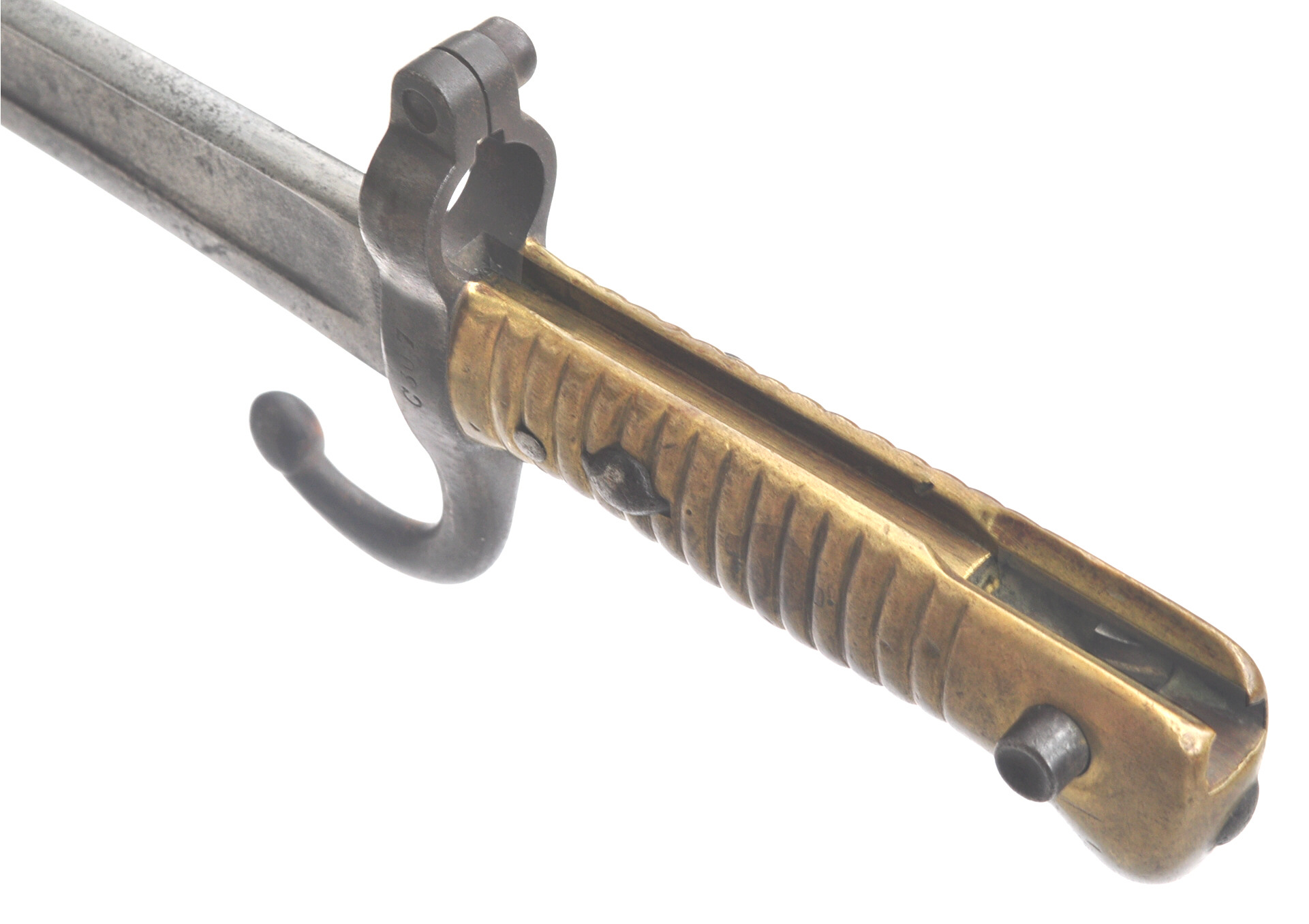 Dieses Yatagan-Bajonett für das Beaumont Gewehr 71 wurde für die