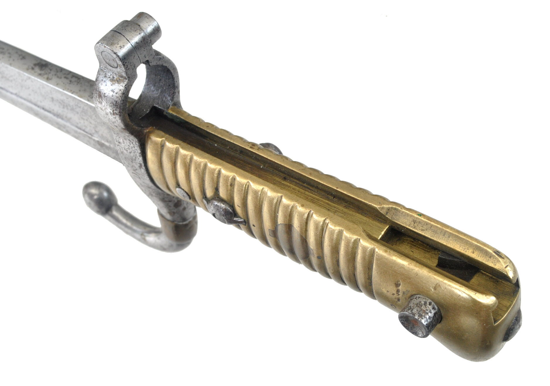Messinggriff mit 15 Rippen, durch 1 Eisenniet mit der Angel vernietet
