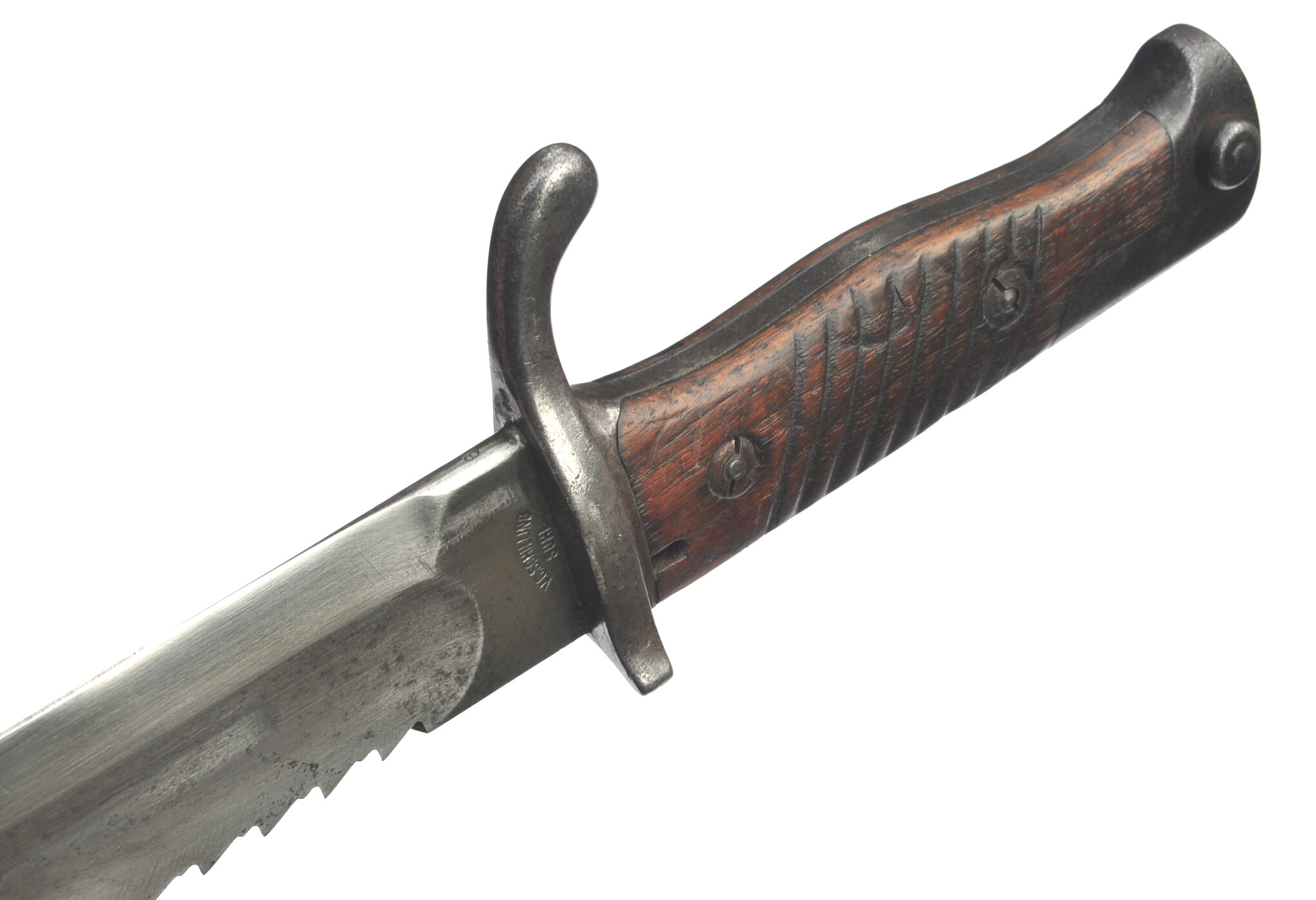 Abnahmestempel auf Klingenrücken, Parierstange klingenseitig, Angel, Haltestiftmutter,