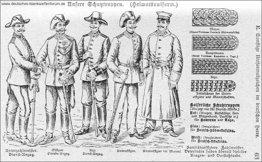 Der Unteroffizier. Allen Unteroffizieren gemeinsame Gradabzeichen sind: Goldene oder silberne Tresse am Kragen und Ärmelaufschlag des Waffenrocks, Feldrocks und am Kragen der Litewka, am Kragen des Drillichrockes und des Mantels schwarz-weiße Borte,