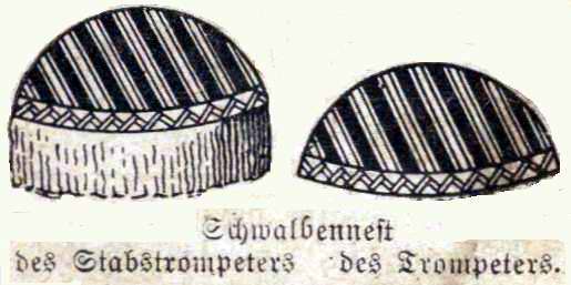 Trompeter tragen außer jenen Abzeichen auf den Schultern sogenannte Schwalbennester und zur Parade rote Haarbüsche.