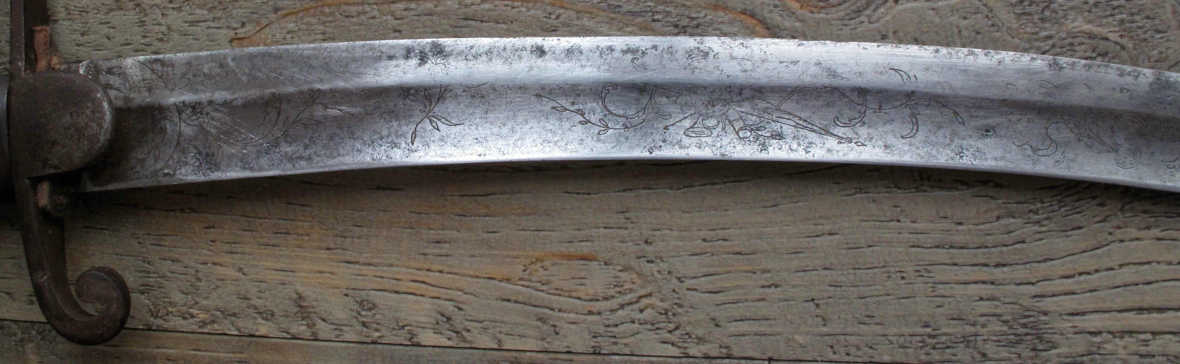 Ein „Pre-Regulation Flank-Officer´s Sword“, wie die Engländer diesen Säbel bezeichnen. So wie ich es verstanden habe, waren die „Flügeloffiziere“ der Infantrie gegen Ende des 18 Jahrhunderts mit ihren Dienst-Seitenwaffen, einem Spadroon eher unzufrieden, da es vorwiegend als Stoßwaffe konzipiert war und sich in der damaligen Kampf-Szenerie als ungeeignet erwies. Daher wurde oft privat eine nicht zu lange und leichte, führige Hiebwaffe beschafft. Die Armee reagierte in der Tat auf diesen Bedarf, indem 1803 eine entsprechende Waffe eingeführt wurde https://collections.royalarmouries.org/battle-of-waterloo/arms-and-armour/type/rac-narrative-469.html