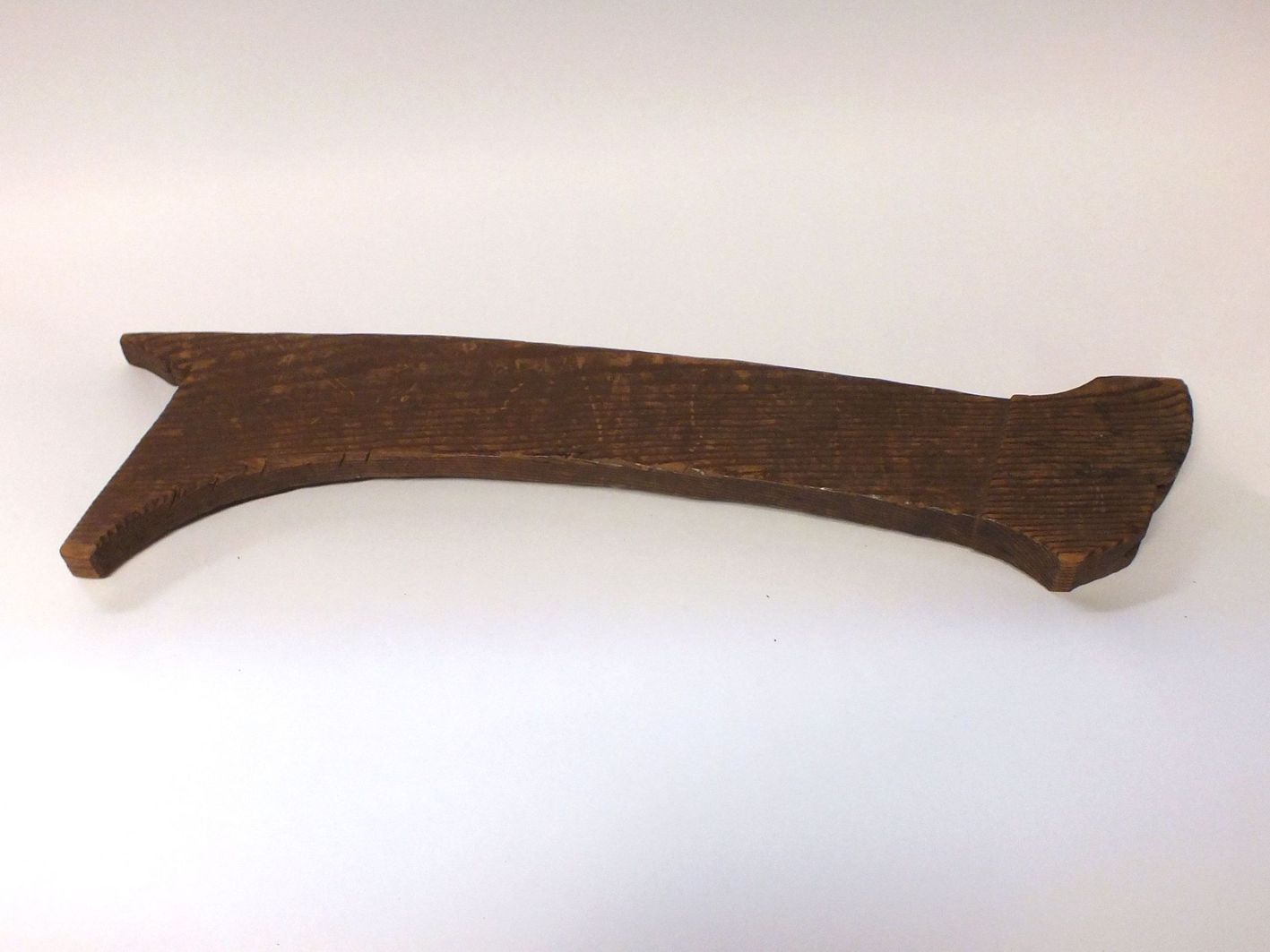in unserer Einrichtung befindet sich eine säbelähnliche Blankwaffe, über deren Herkunft und Verwendung wir keine näheren Informationen besitzen. Das Exponat (Gesamtlänge: 65,8 cm) kam im Jahr 1961 in unser Haus. Die Klinge (44 cm lang) ist aus Stahl und der Griff aus Horn, umfasst von einem Metallring. Dazu gehört eine Scheide aus Holz.