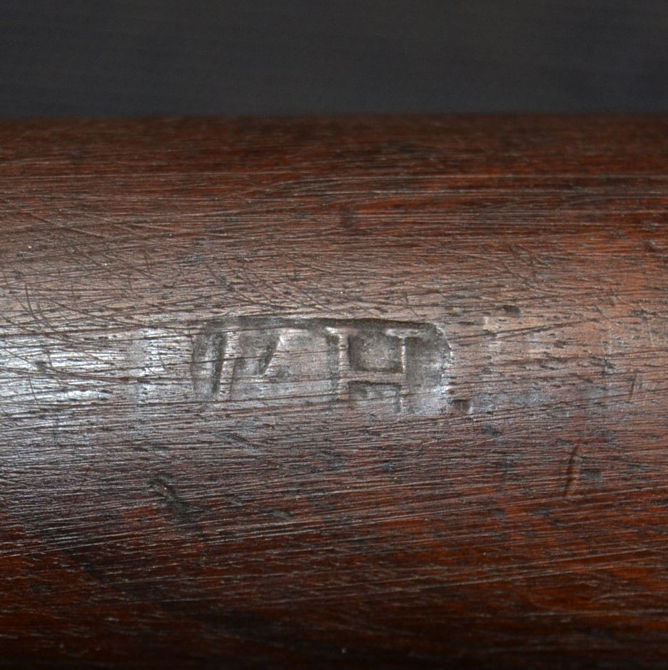 Die Waffe hat eine Messinggarnitur. Ob der Ladestock zugehörig ist kann ich nicht beurteilen. Auffällig ist die Federklinke an der Mündung zur Arretierung des Bajonetts. Fast alle Teile sind gestempelt. Am häufigsten ist hierbei die Kennzeichnung ITK vorhanden - nämlich auf allen Ringen, dem Abzugsbügel sowie dem Rohr auf Höhe des Pulversacks. Der Lauf selbst wirkt deutlich älter als der Rest der Waffe. Auch hat es den Anschein, als wäre der mal in einem Gewehr ohne Laufhalteringe verbaut gewesen. Ich weiß, dass es sich um ein bayer. Gewehr handelt das sehr wahrscheinlich der Land- bzw. Bürgerwehr zuzuordnen ist.