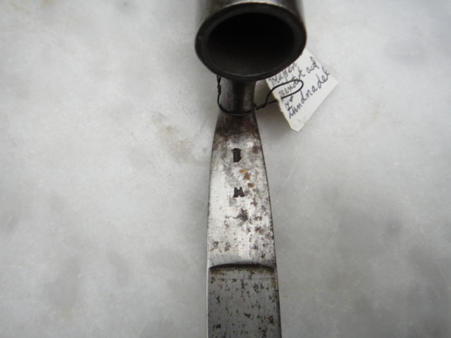 Ich habe vor kurzem einige Seitengewehre bekommen,unter anderem dieses Tüllenbajonett M1809.Eine zuordnung ist für mich schwierig.Heute habe ich das Stück nochmal in die Hand genommen und festgestellt das sich in der Tülle eine Art Reduzierung befindet,damit das Bajonett auf ein Gewehr mit dünerem Laufdurchmesser passt.