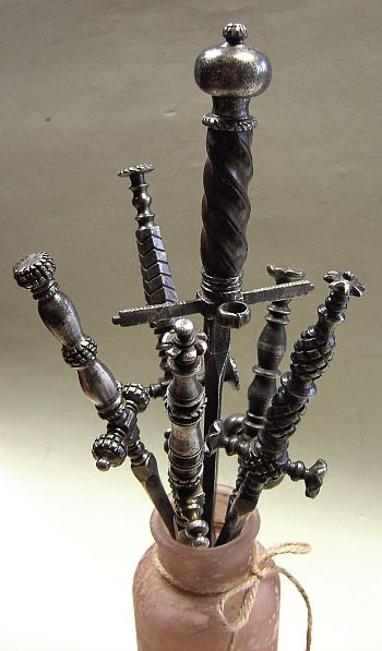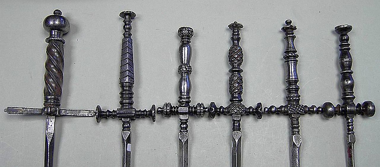 Es handelt sich um insgesamt sechs vermutlich in Brecia im 16. Jahrhundert gefertigte Stiletti unterschiedlicher Länge und Griffgestaltung, die für sich ein sehr reizvolles Sammelgebiet darstellen.