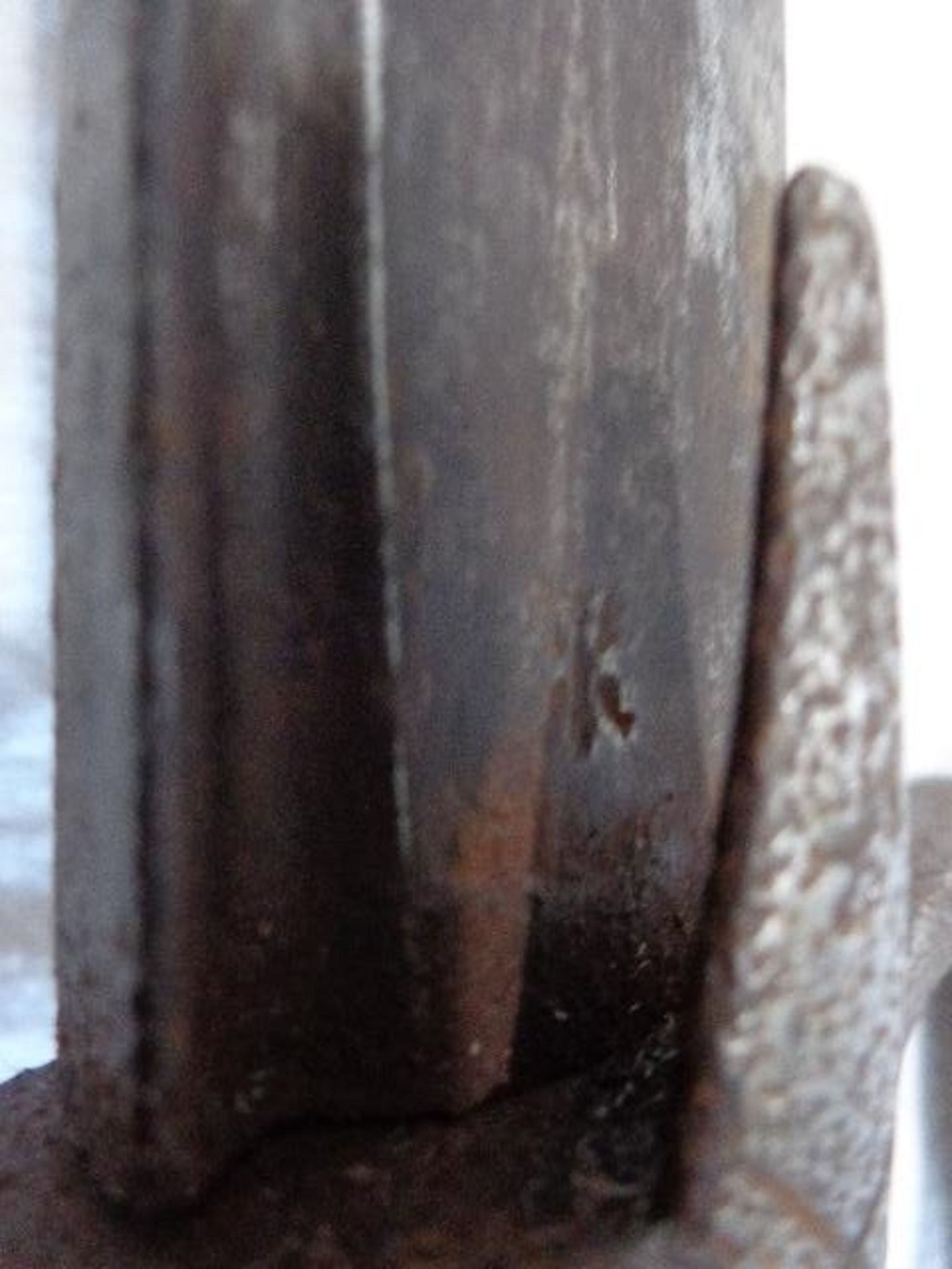 Der Grund, warum ich dieses Teil hier einstelle, sind ja schon genug zu sehen, ist die Parierstange. Es läuft nicht mit einen "Zapfen" aus, einfach nur gebogen.