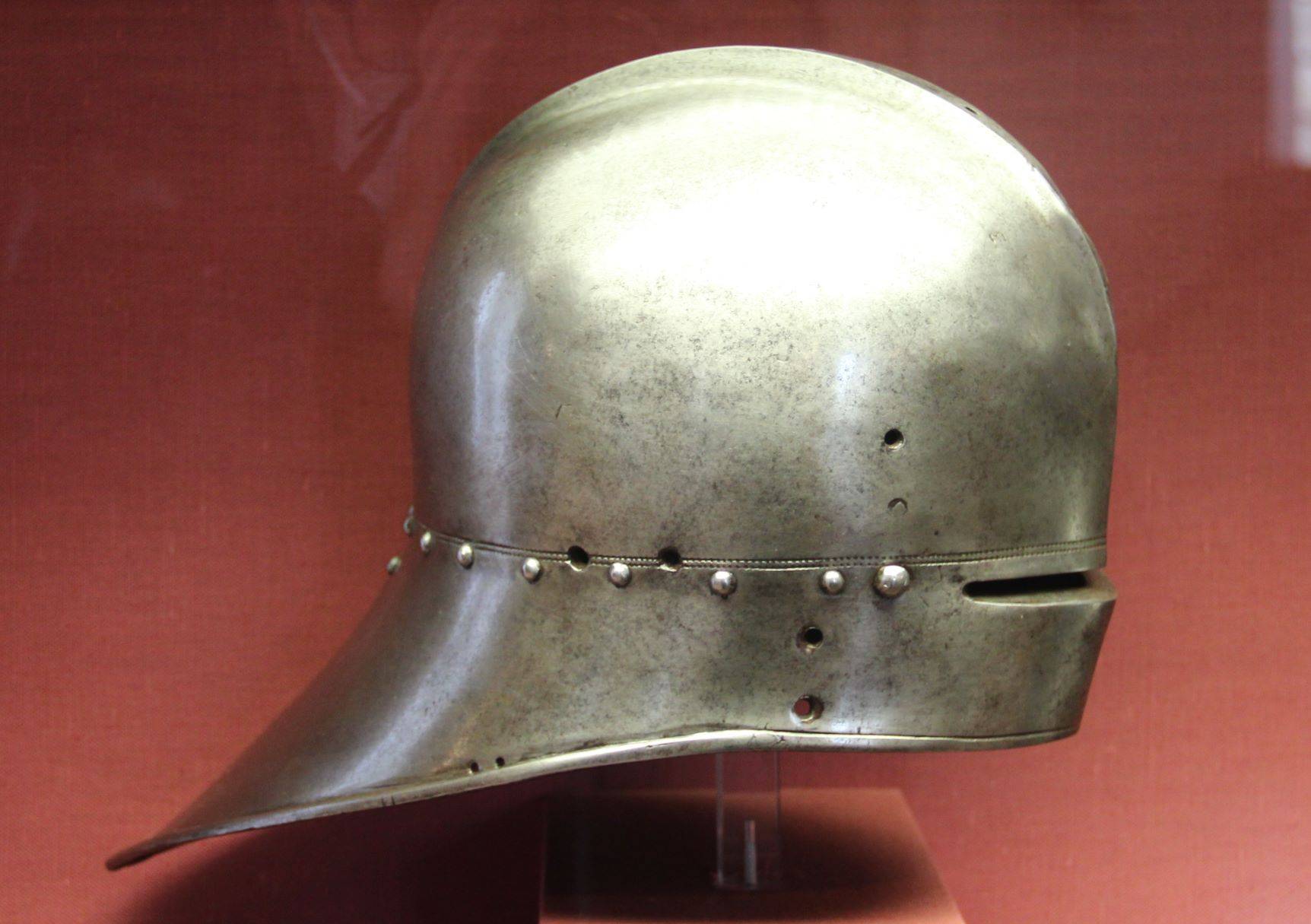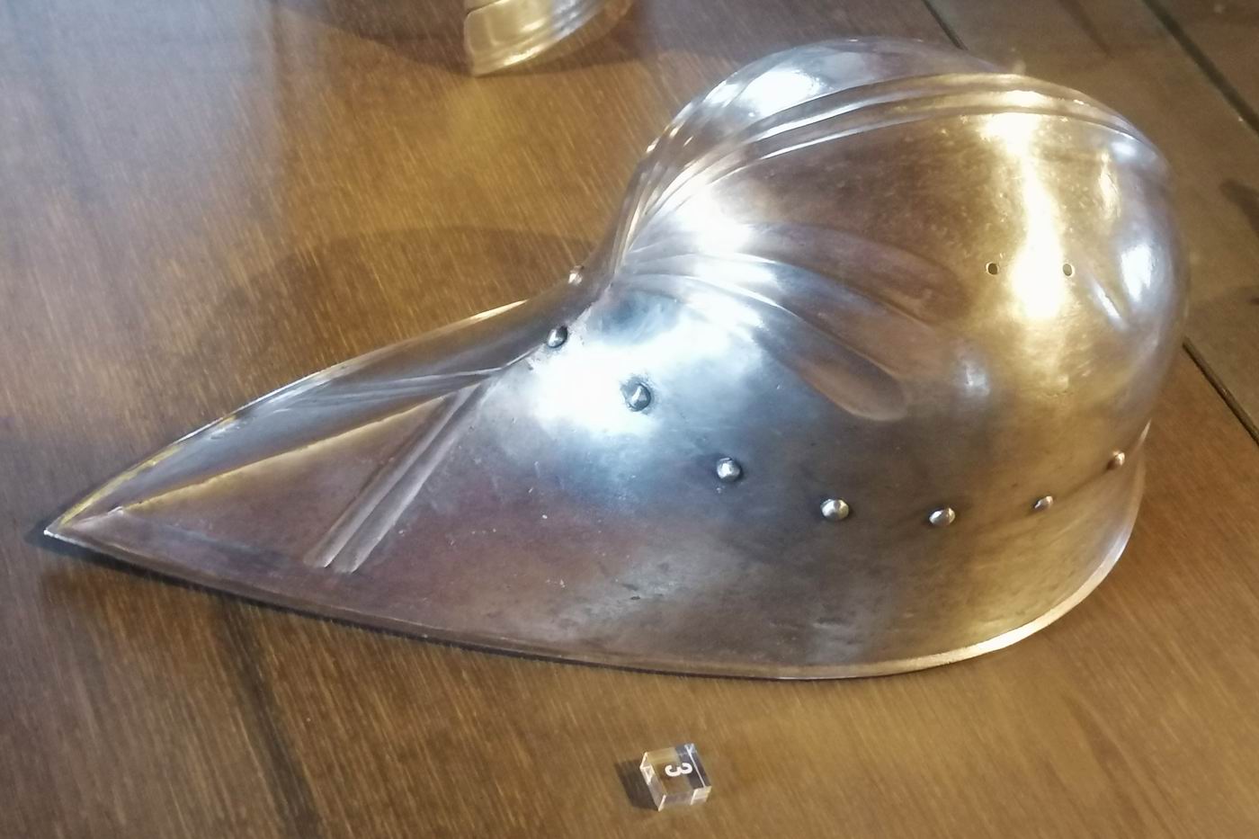 Diese Version hat nur Sehschlitze anstatt eines Visiers und der Nackenschild ist sehr weit ausgezogen. Es gibt auch Varianten mit kürzeren Schilden und Schüben für bessere Beweglichkeit.