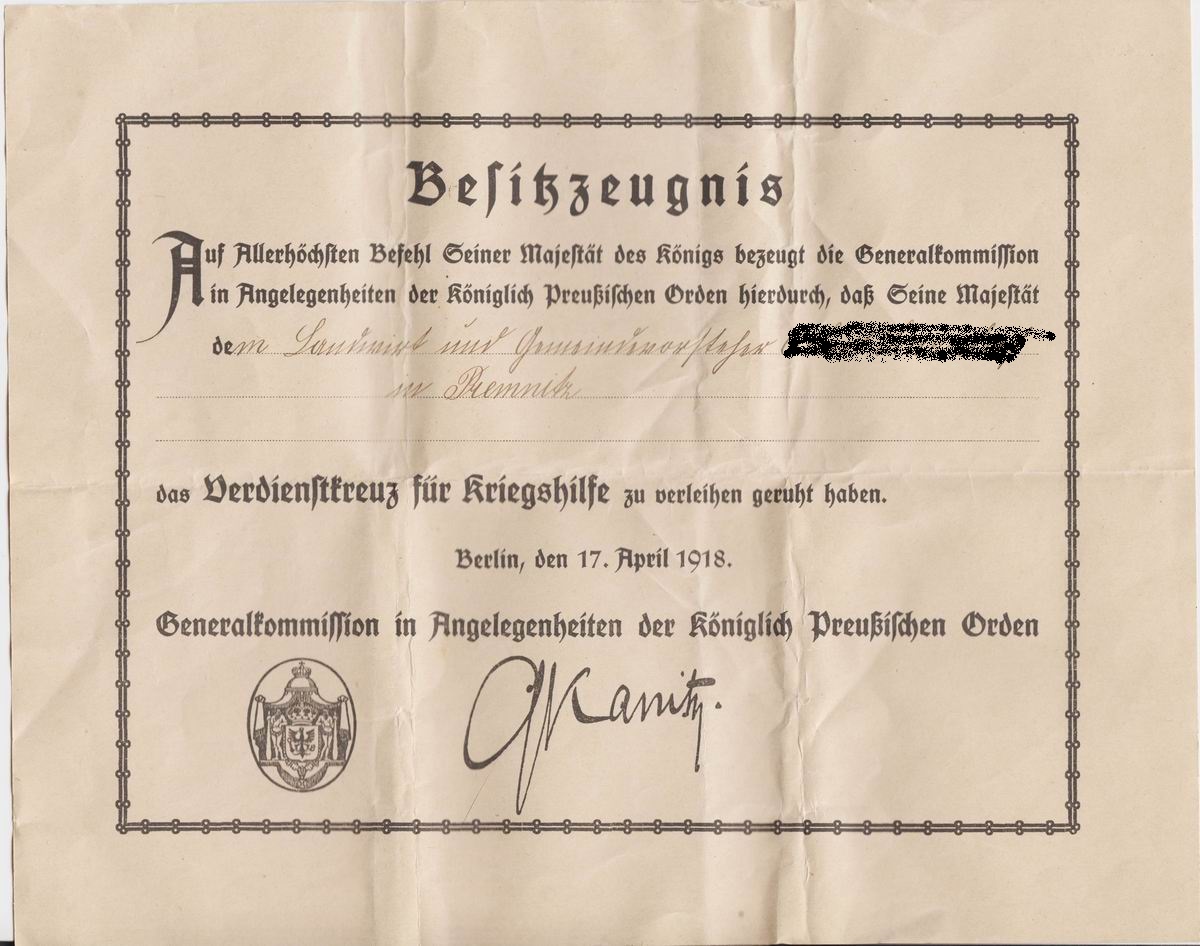 Thema: Verdienstkreuz für Kriegshilfe (https://www.deutsches-blankwaffenforum.de/topic.php?id=8886)