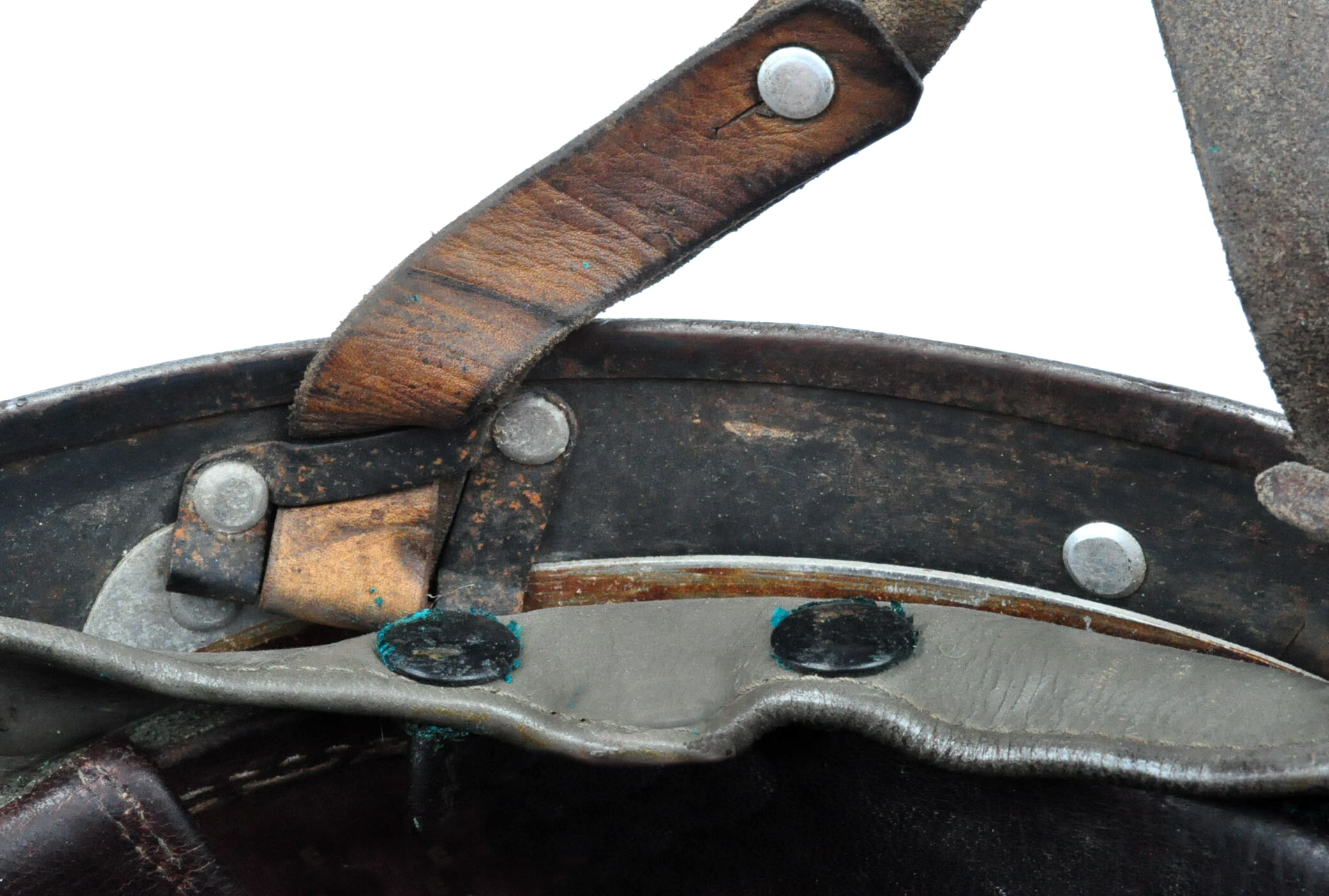 den elastischen britischen Kinnriemen sind durch Blindnieten verschlossen.