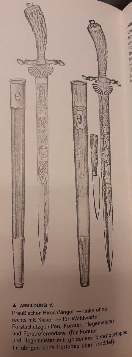 Hirschfänger mit Bügelgefäß waren den Revierförstern, Forstassessoren, Oberförstern, Forstmeistern und weiteren höheren Rängen vorbehalten.