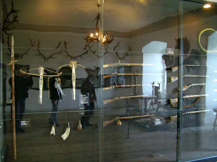 Blick in die augenblicklich ausgestellte jagdliche Sammlung.