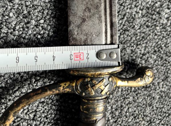 Der hier vorgestellte Säbel sieht ebenfalls wie eine Mariage von verschiedenen Teilen aus wobei der Griffbügel mit seiner Parierstange entfernt an einen preussischen Mineursäbel erinnert.
