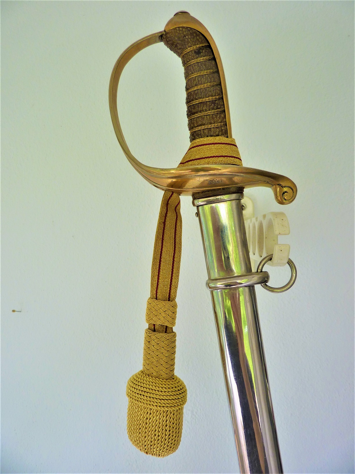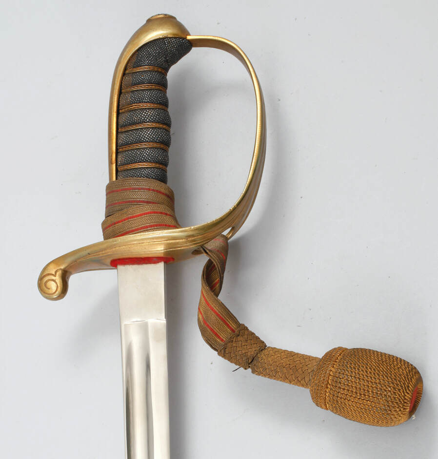 Ingenieur-Offizier-Ausgabe des Säbels M1858 mit vergoldetem Messinggefäß. Ab 1904 hatte der Säbel nur noch einen Tragering.
