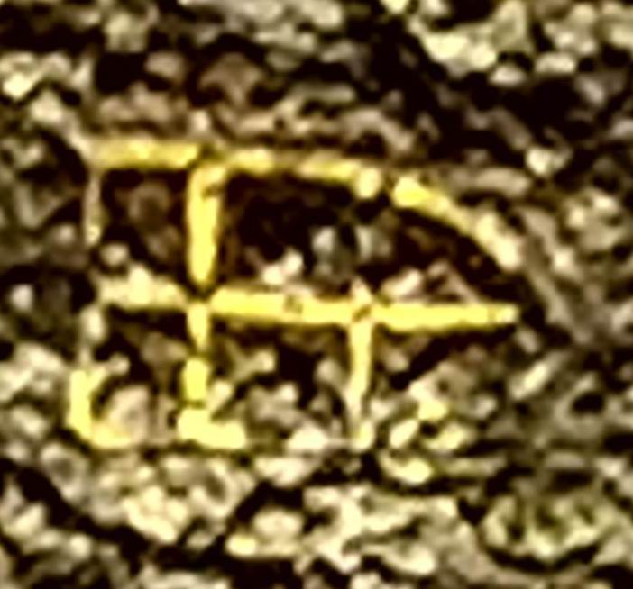 Klinge mit schmaler, tiefer, Hohlkehle. Die Hohlkehle zieht sich über etwa zwei Drittel der Klingenlänge und ist mit einer Verzierung versehen, ähnlich eines Wappenschilds oder einem gotischen Fenster. Einen Bienenkorb würde ich mal ausschließen, wegen der inneren Unterteilung.