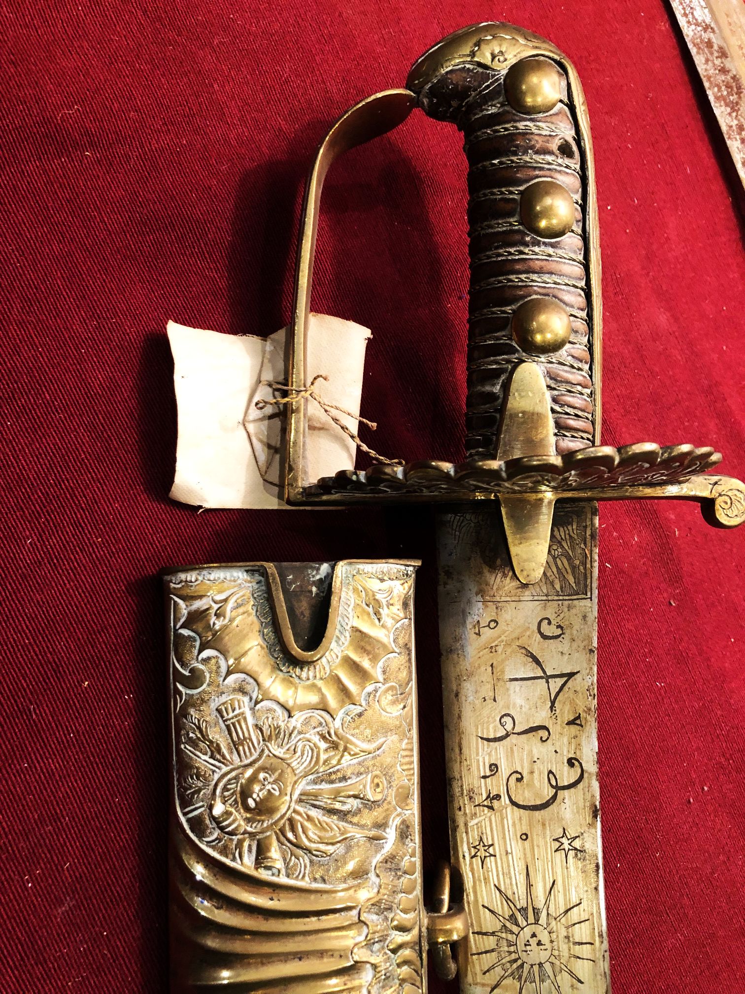 Anbei Fotos eines recht attraktiven Husarensäbels, über dessen Herkunft ich mir nicht ganz im Klaren bin. Bemerkenswert neben der Klingenikonografie, die ich dem esoterischen Bereich zuordnen möchte, sind die beiden Haken an der Klingenspitze. Vielleicht gibt es ja hier einen Menschen, der Näheres zu diesem Stück sagen kann? Ein recht ähnliches Stück ist im Übrigen bei Maier, Bayerische Blankwaffen Bd. I abgebildet, allerdings handelt es sich dort um einen Degen.