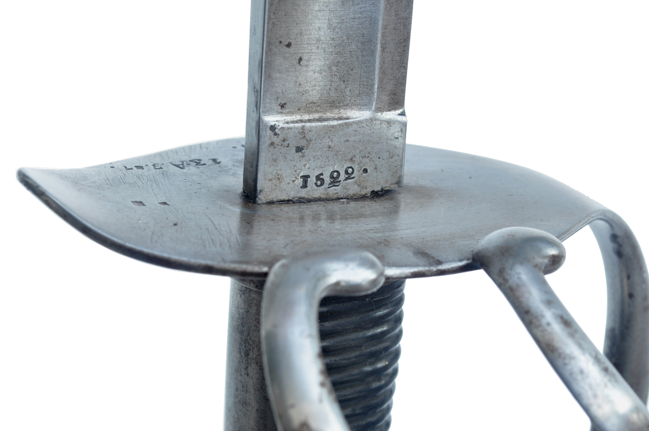 auf dem Stichblatt klingenseitig 2 Abnahmestempel und Truppenstempel 13.A 7.87