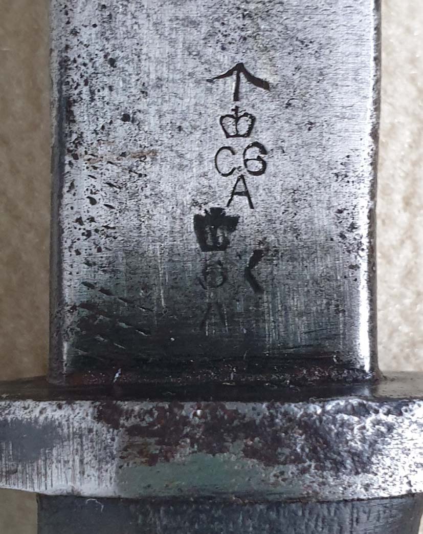 Klinge: Punze: Britische Königskrone über 6