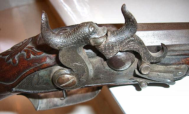 Die Umbauarbeiten auf das Perkussionssystem hingegen wurden ganz offensichtlich in den 1840er-Jahren durchgeführt, zu einer Zeit also, als die Waffe schon gut 100 Jahre alt war. Das Anbringen einer Pistonsicherung, welche die Batteriefeder als Stütze verwendete, kam um diese Zeit auf, ein Detail, welches sogar von der preußischen Armee ab 1850 für ihre Kavalleriefeuerwaffen angenommen wurde.