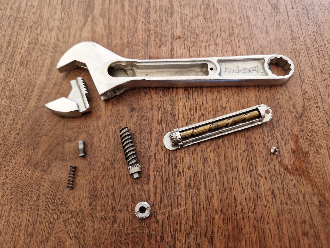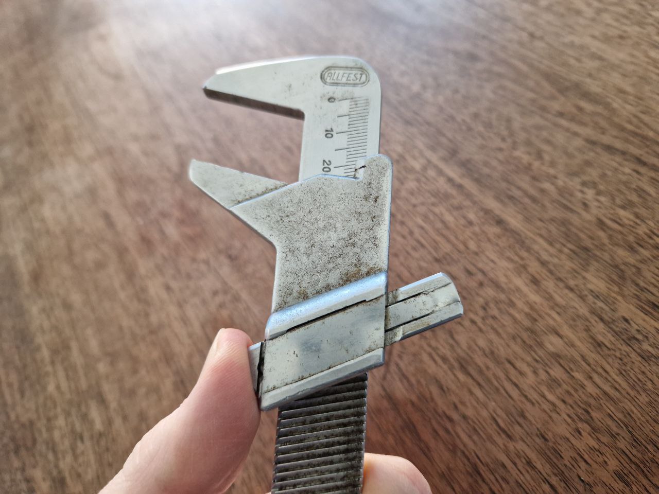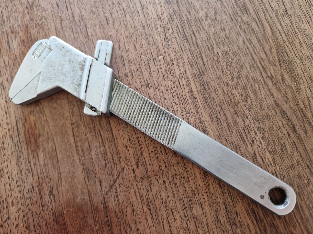 Und wenn wir schon bei "jüngeren" Stücken sind, darf sich bei dieser Gelegenheit dieser Verstellschlüssel von Allfest mit Schieblehrefunktion und D.B.P. Markierung (